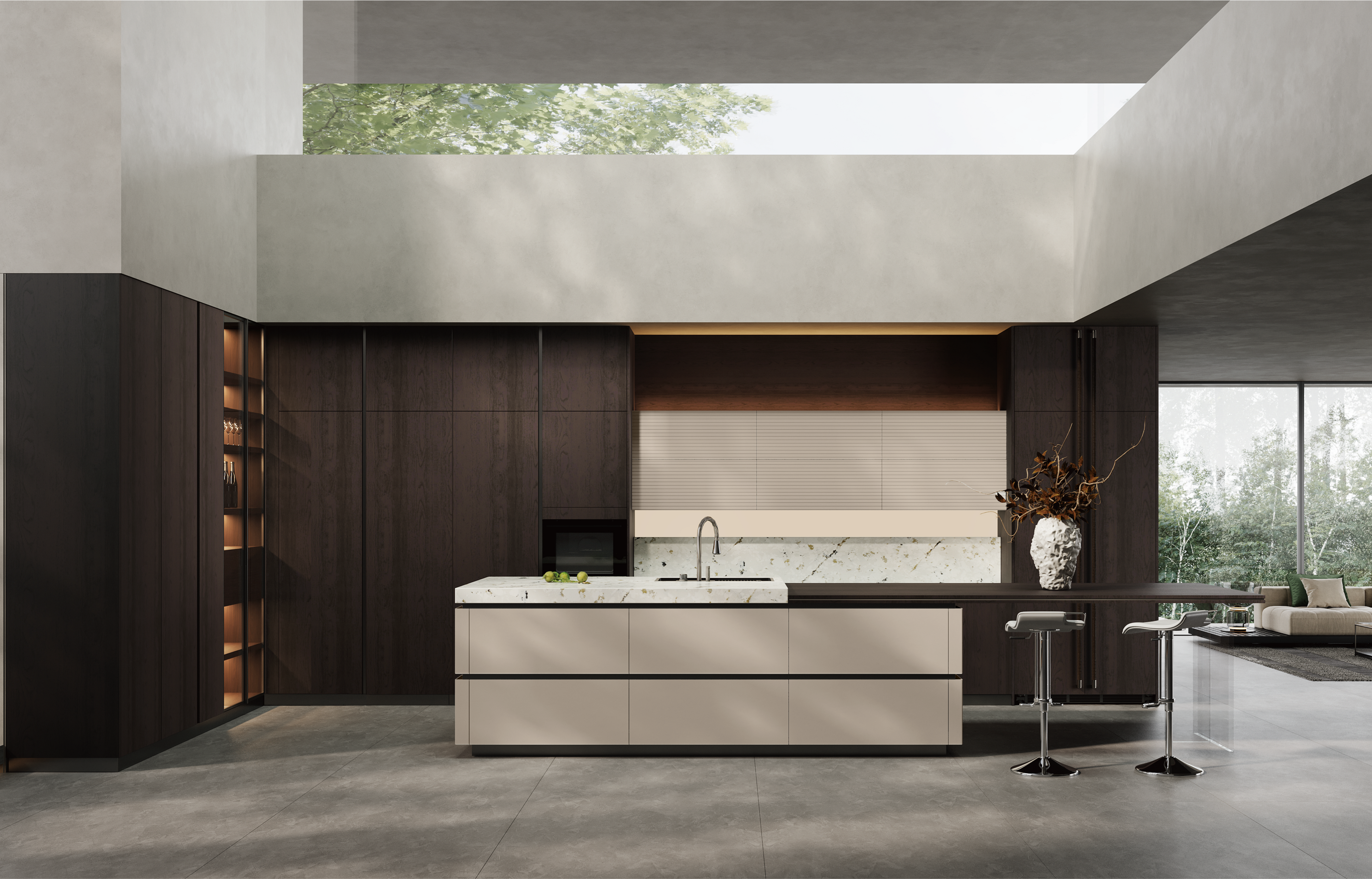 通过EBET易博厨柜量体裁柜,定制出适合主厨下厨的烹饪区和洗涤区的舒适高度。